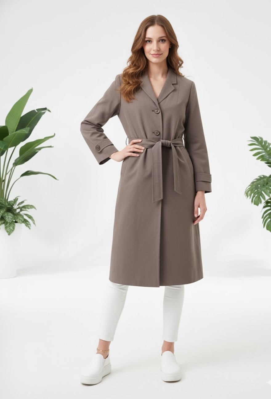 بارانی‌ بلند کمربند گره ای که در نگاه اول دل می‌برد! طراحی خاص، دوخت تمیز و فرمی زنانه و مدرن باعث شده این مدل یکی از محبوب‌ترین انتخاب‌ها برای استایل روزمره‌ی بهاره و پاییزی باشد.